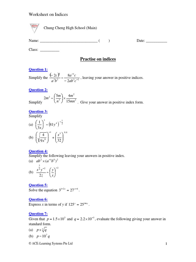 Secondary 3 Worksheets - Hiak Education Services Pte Ltd Looking for maths tuition in Singapore? Gain access to class-based and online PSLE and O Level maths tuition & training at Matrix Math that guides you how ...